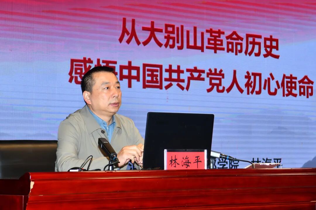 河南省省委黨校教授周遠(yuǎn)方、河南大別山干部學(xué)院林海平副教授分別講授《重讀歷史文獻(xiàn) 踐行“三個(gè)務(wù)必”》《從大別山革命歷史感悟共產(chǎn)黨人的初心使命》課程。
